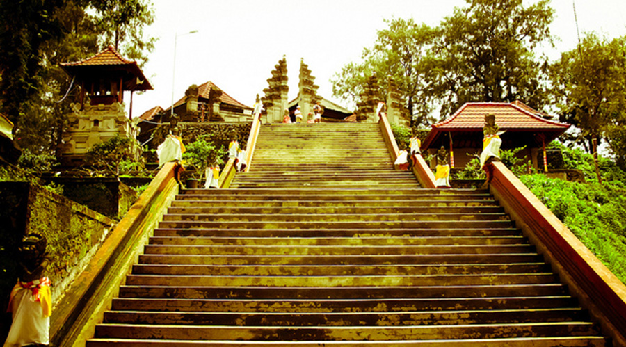 Puncak Penulisan temple is located on the hill with a height of 1,745 meters above sea level. This temple is often called the Pura Tegeh or Pura Pamojan. Its function is as a place for worship of Lord Shiva which is a manifestation of Almighty God. In that temple there are many relics of the Megalithic period up to the entry of Hindu civilization to Bali.